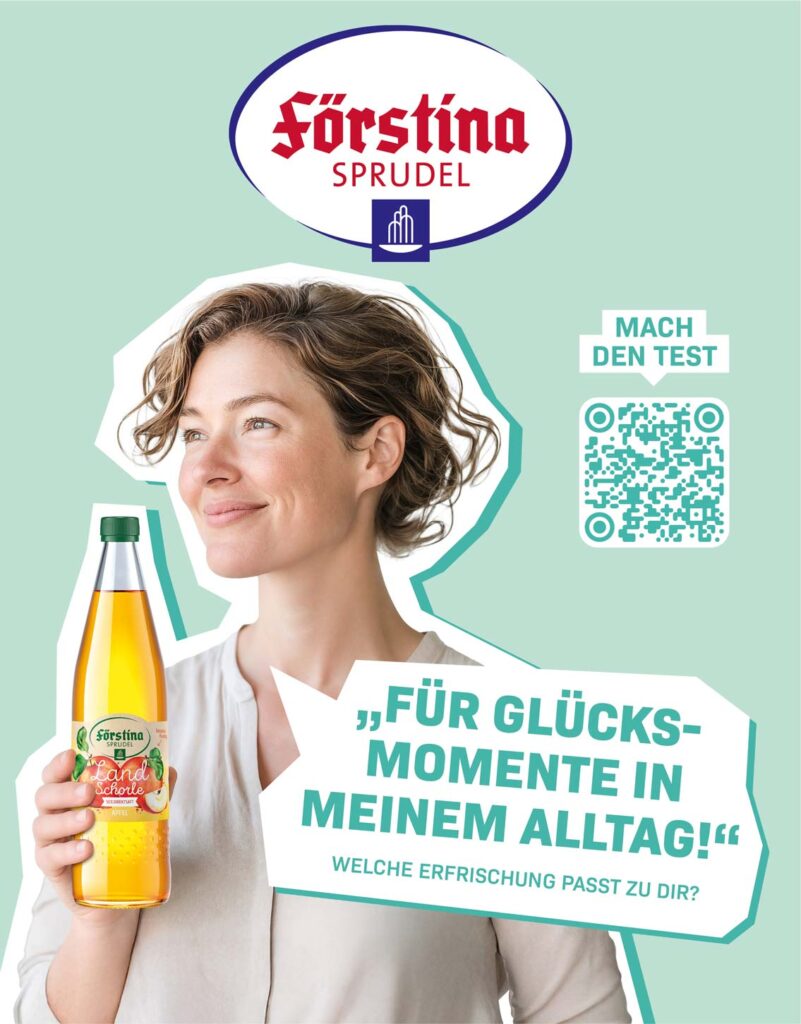Im Fokus stand dabei die Produkt-Vielfalt und eine konzeptionell und visuell schlüssige Inszenierung der Promotion-Idee. Mit dem Förstina „Erfrischungsrad“ und der Aufforderung, die passende Erfrischung zu finden, thematisierten wir individuelle Shopper-Präferenzen und schufen einen starken Impuls am POS. Ein Gewinnspiel mit attraktiven Prämien passend zur Markenwelt und ein Paket von abverkaufssteigernden Kommunikations-Tools waren wesentliche Elemente der Aktion.