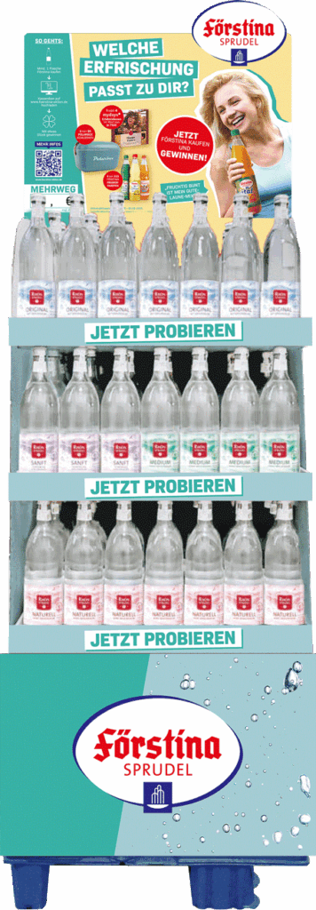 Von natürlichem Mineralwasser über erfrischende Schorlen bis hin zu Vitalgetränken findet jeder bei Förstina etwas für seinen Geschmack. Um Probier-kontakte über das gesamte Sortiment zu generieren und die Shopper Awareness zu steigern, entwickelten wir ein umfassendes POS-Aktivierungskonzept.